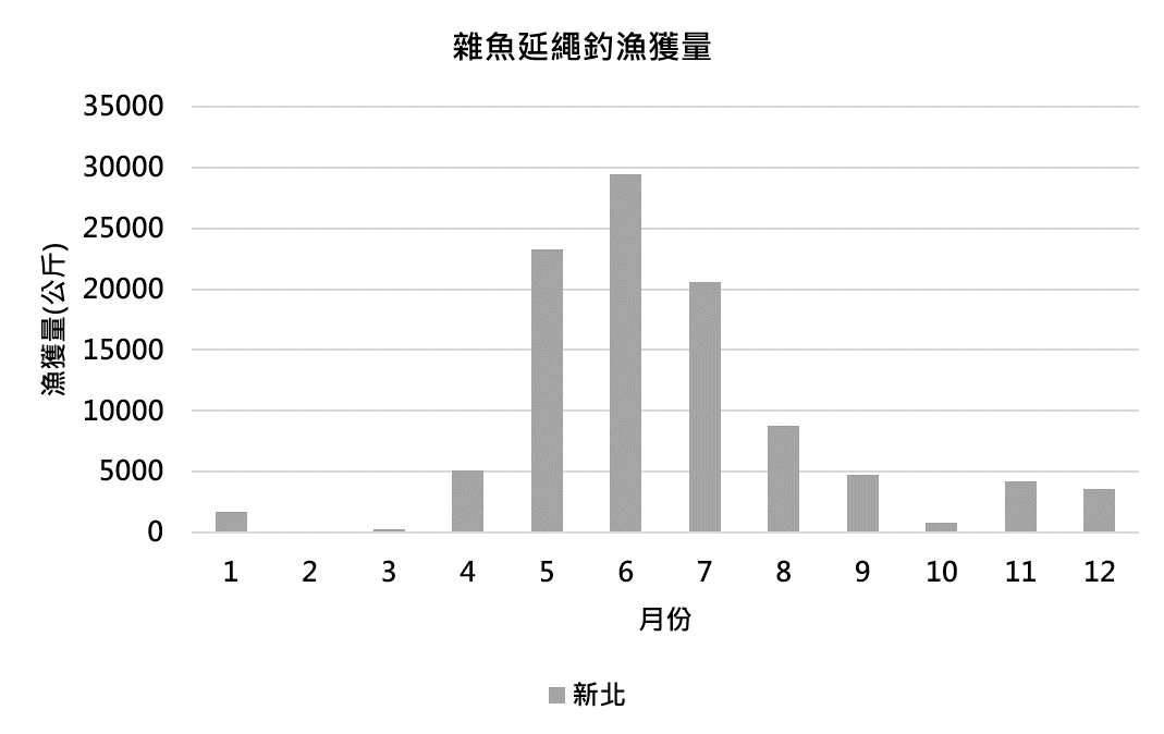 雜魚延繩釣僅新北使用,主要於5-7月捕獲。